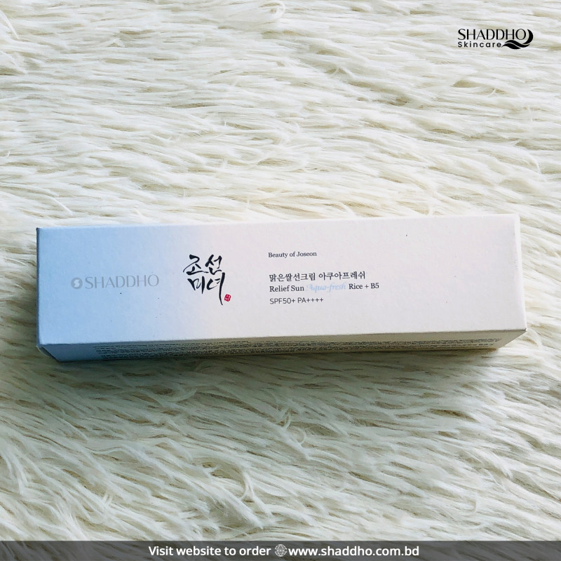 Protect your skin with the Beauty of Joseon Relief Sun Aqua-Fresh Rice + B5 SPF50+ PA++++, a sunscreen that combines powerful sun protection with the nourishing benefits of rice and vitamin B5. This lightweight, refreshing sunscreen provides broad-spectrum protection against harmful UVA and UVB rays with SPF50+ PA++++. Infused with rice extract and vitamin B5, it helps to brighten, hydrate, and soothe the skin, making it perfect for daily use. The non-greasy formula absorbs quickly, leaving a soft, smooth finish without a white cast, ideal for all skin types.