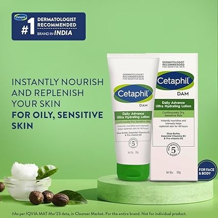 Cetaphil DAM Daily Advance Ultra Hydrating Lotion (100g) offers deep hydration and lasting moisture for dry and sensitive skin. Its rich, non-greasy formula helps restore the skin's natural barrier while keeping it soft, smooth, and nourished.