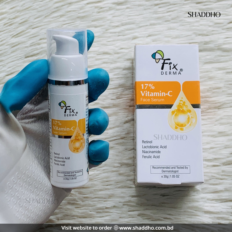 Rejuvenate and brighten your skin with Fixderma 17% Vitamin C Face Serum, a potent antioxidant-rich formula designed to fight dullness, pigmentation, and early signs of aging. This lightweight serum penetrates deeply to nourish, protect, and revitalize your complexion, leaving it radiant and glowing.