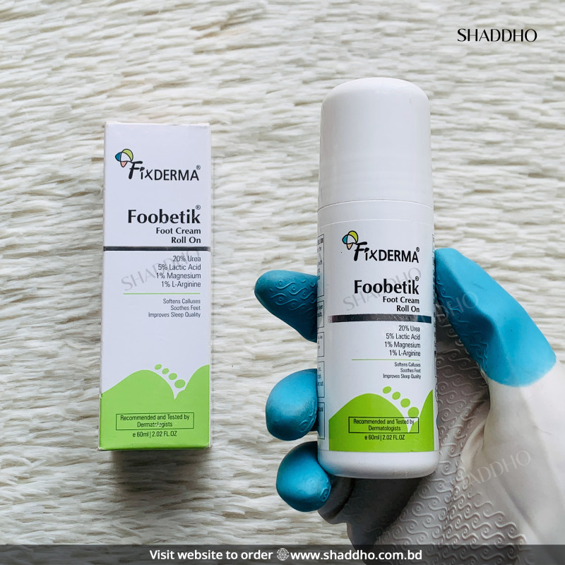 Fixderma Foobetik 20% Urea Foot Cream Roll-On (60ml) is an effective and convenient solution for dry, cracked feet — delivering deep hydration, softening tough skin, and revitalizing feet with every use.