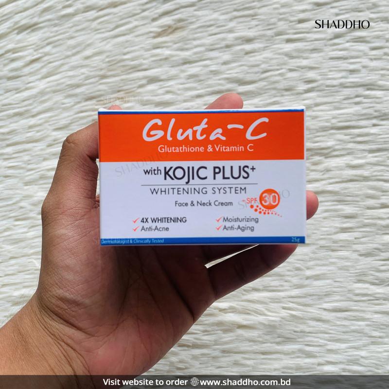 Gluta-C With Kojic Plus+ Whitening System Face & Neck Cream (25g) is an effective daily skincare solution for individuals looking to achieve a brighter, more even, and radiant complexion. Its blend of whitening ingredients and hydrating agents helps nourish the skin while targeting pigmentation and dullness.