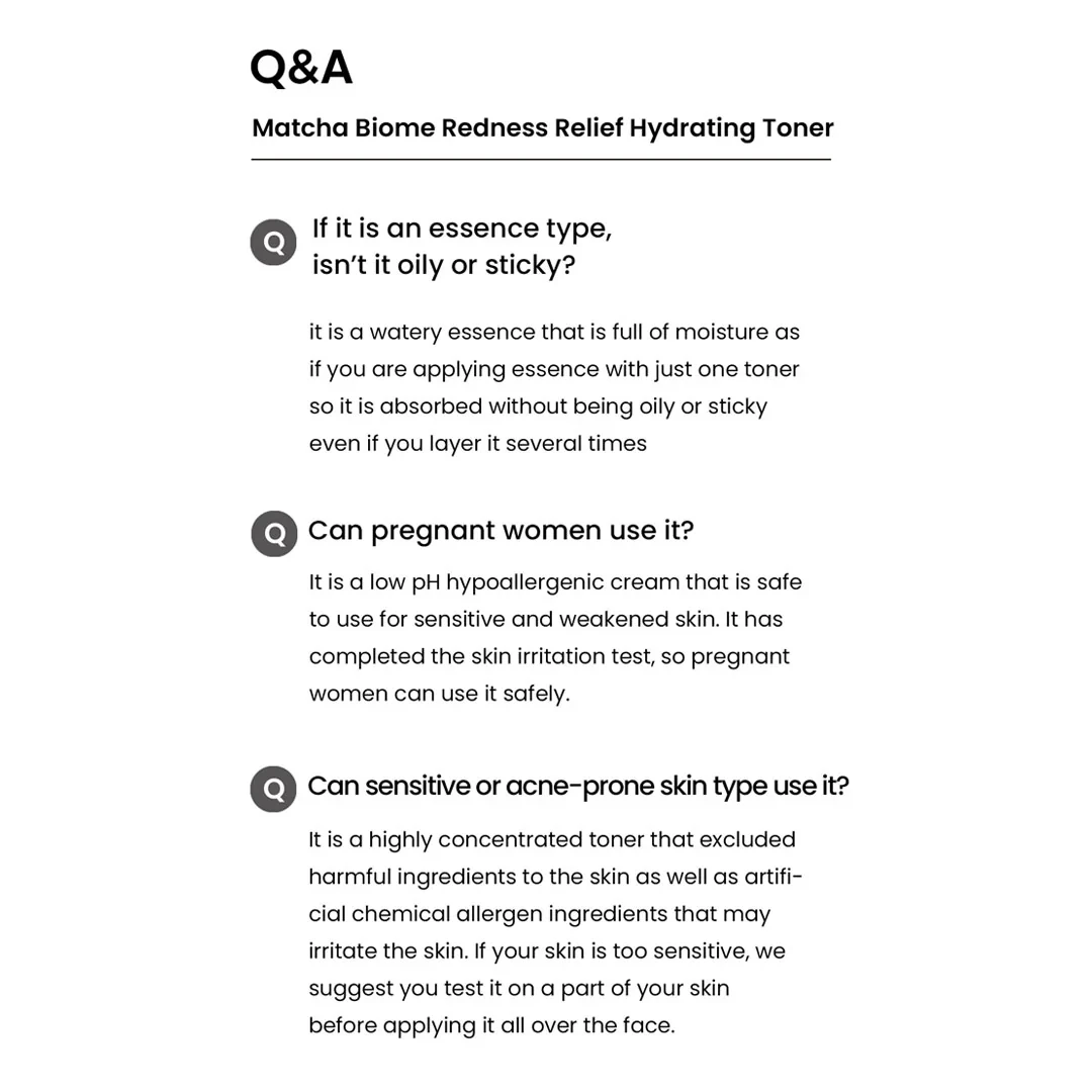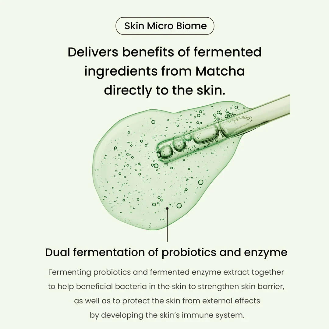 Improve skin tone and texture with just one-time use! Non-sticky essence toner that is full of moisture. Watery essence toner containing matcha extract, probiotics, and hypoallergenic ingredients to improve skin texture and vitality.