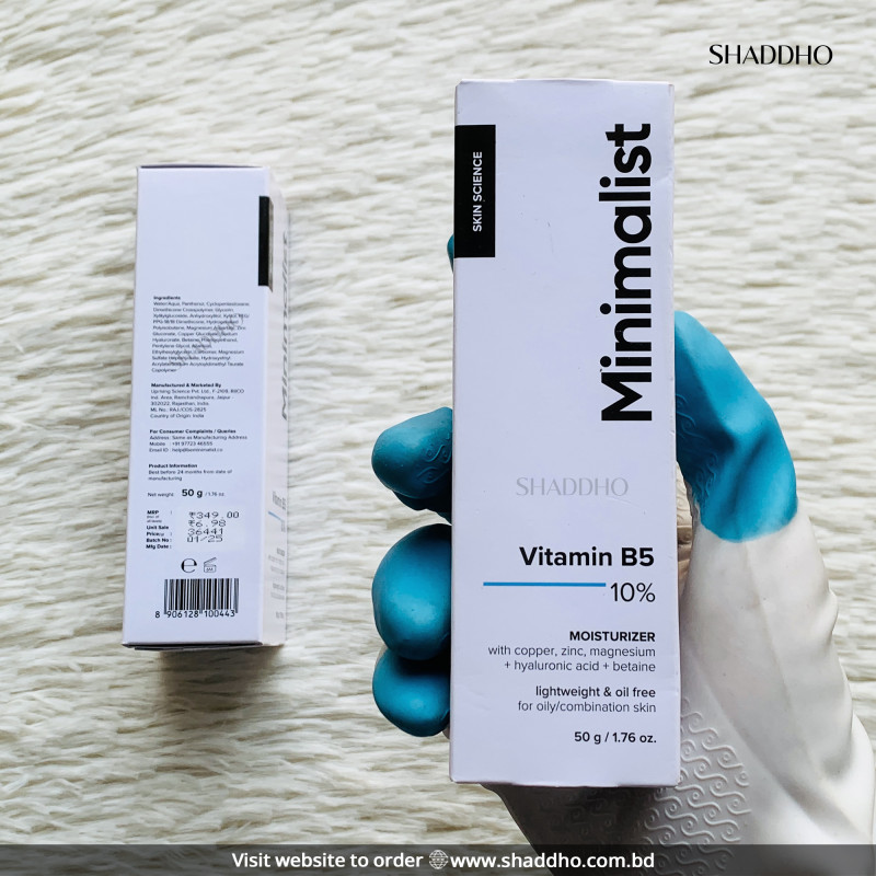 Minimalist 10% Vitamin B5 Moisturizer is a lightweight, deeply hydrating formula designed to nourish, repair, and strengthen the skin barrier. Enriched with Vitamin B5 (Panthenol) and other skin-soothing ingredients, it provides long-lasting hydration, reduces irritation, and improves overall skin texture. Ideal for dry, sensitive, and compromised skin, this moisturizer helps restore moisture balance without clogging pores.